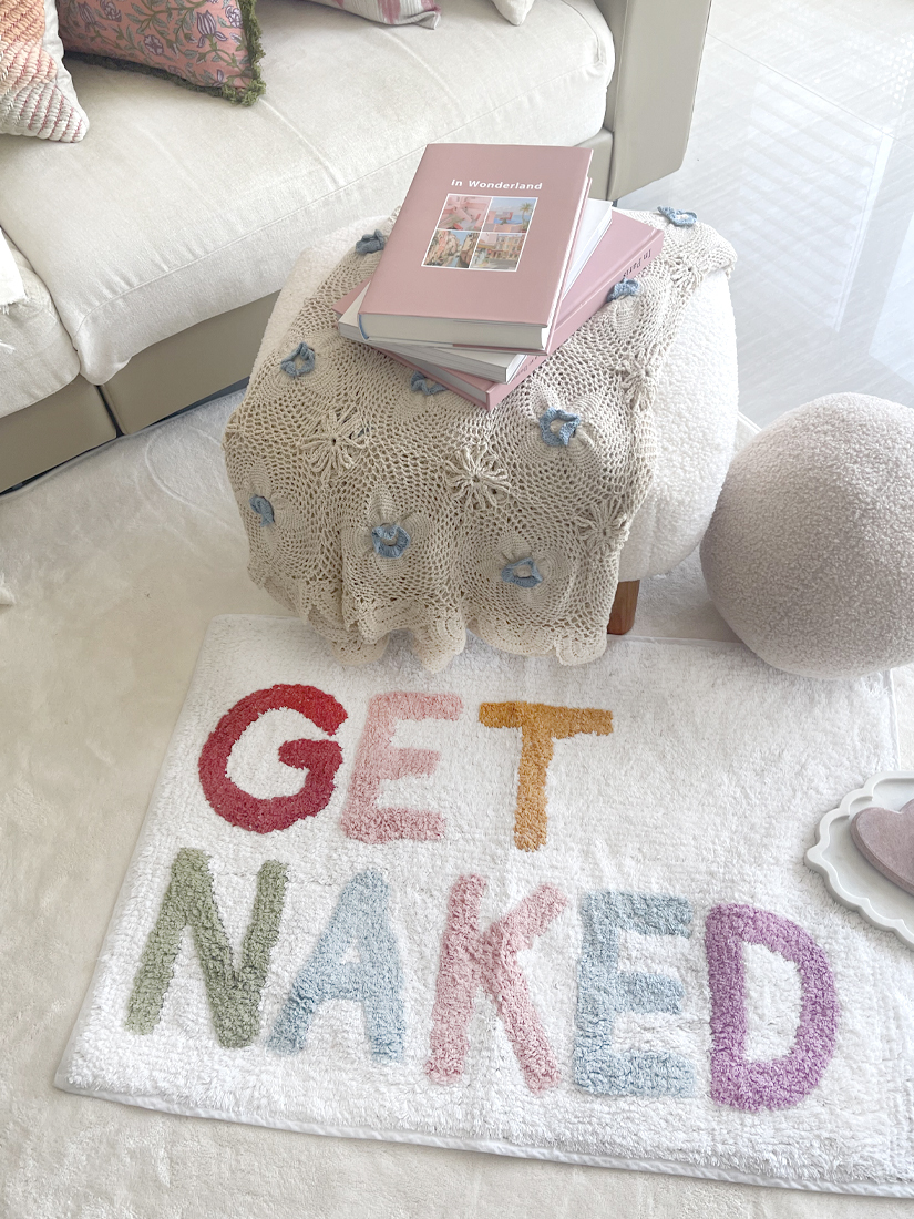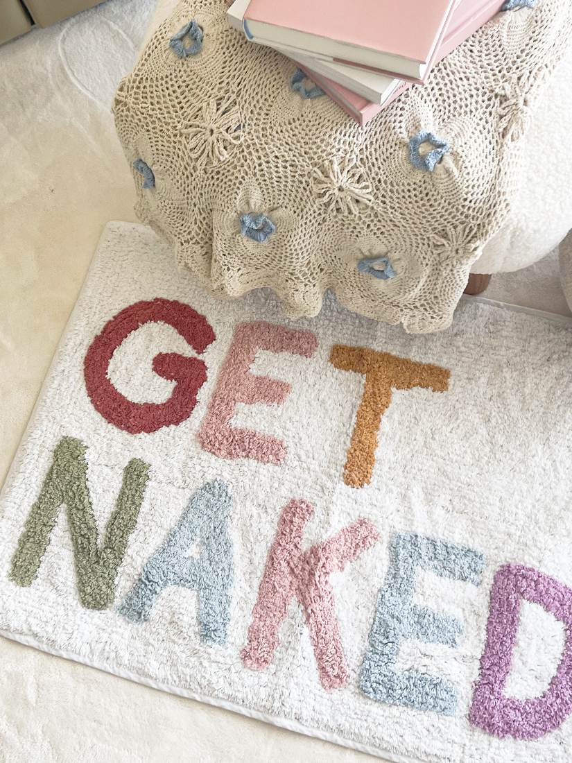 印度手工Get Naked標語腳踏墊