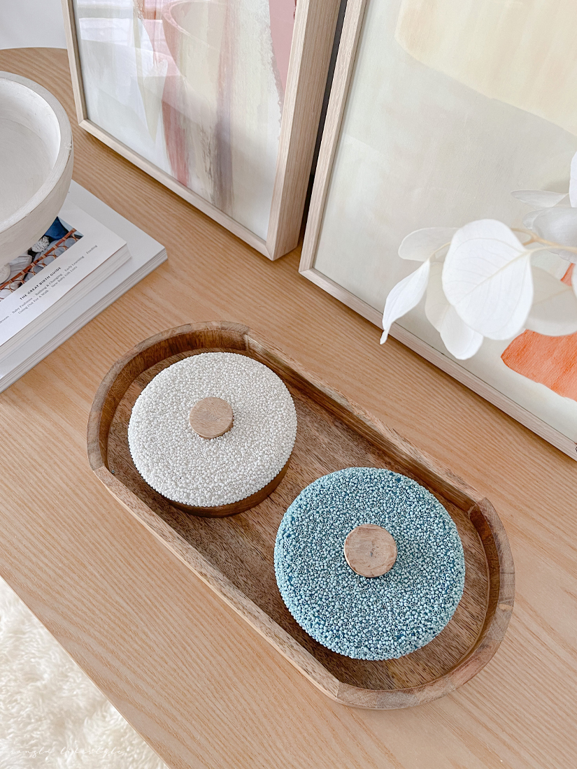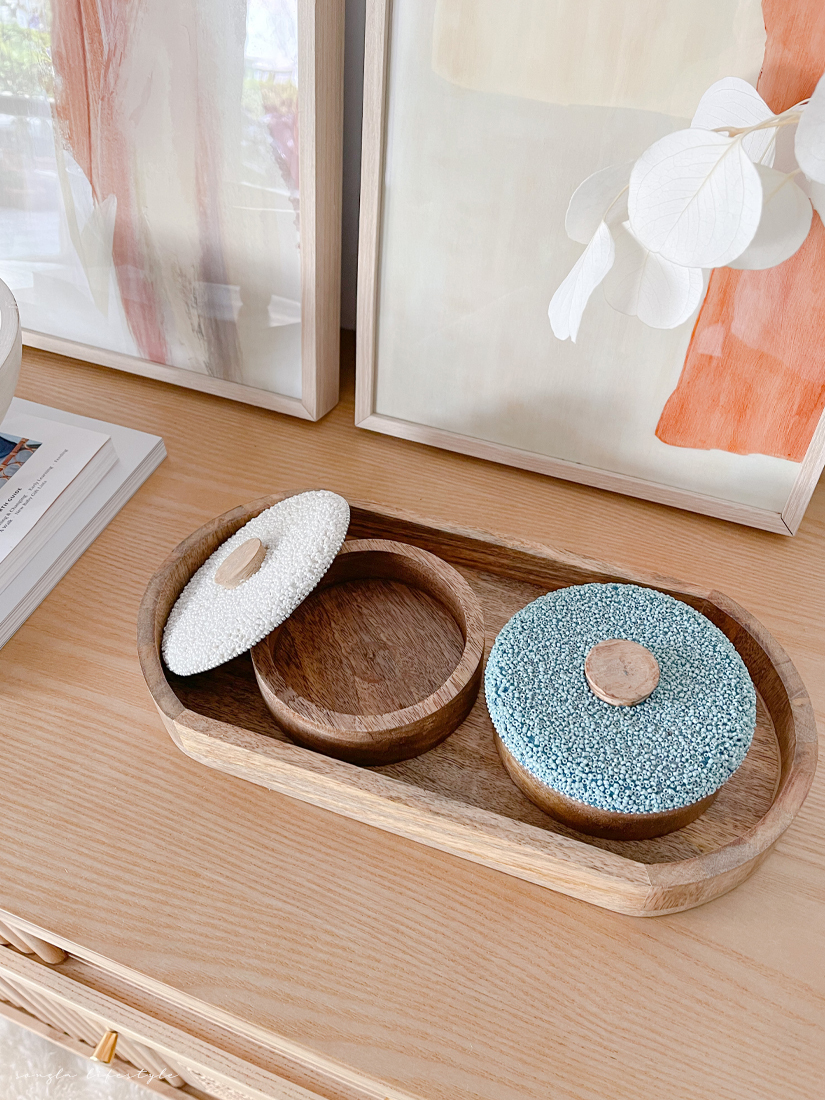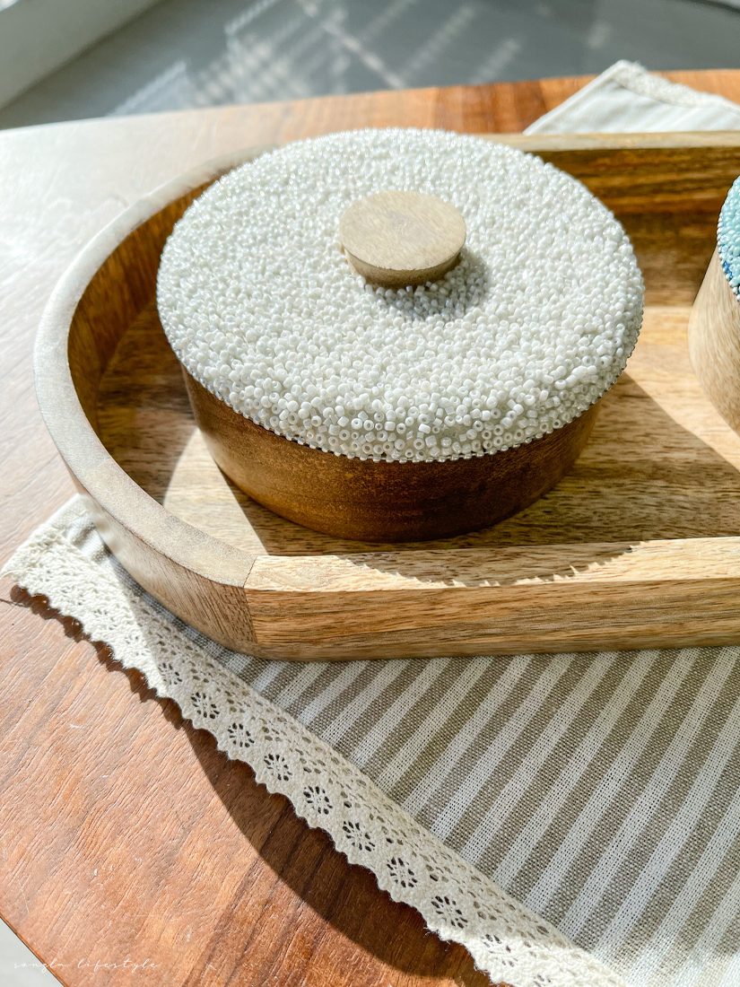 印度進口純手工芒果木串珠裝飾收納罐與托盤組合