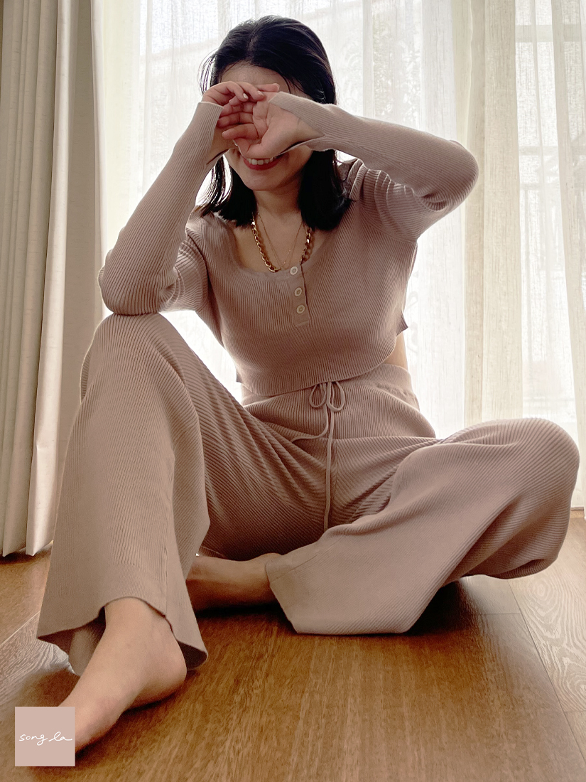 Songla自訂設計生產家居服-柔軟純慾風半開襟羅紋短版上衣