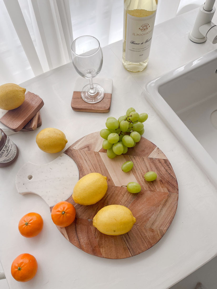 印度手工原木與石材拼接人字紋圓形托盤
