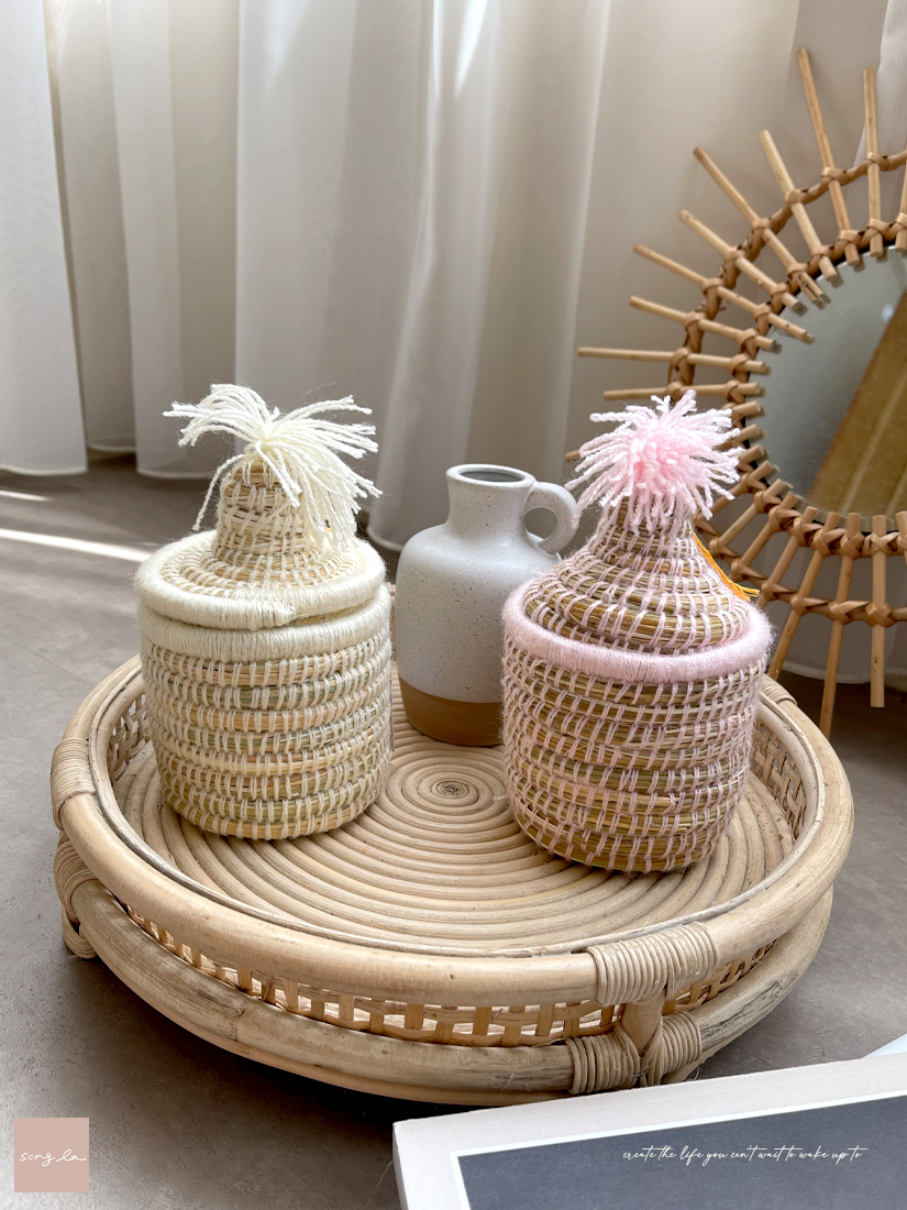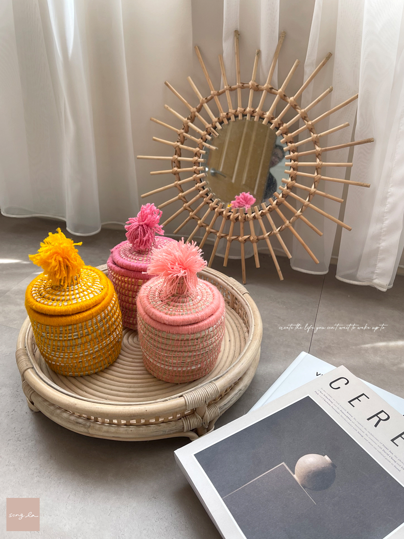 加拿大進口摩洛哥純手工毛球裝飾編織收納籃
